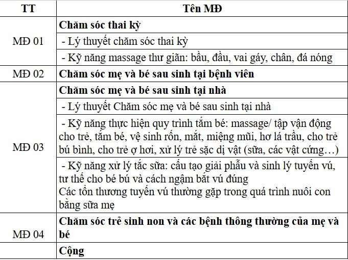 Chương trình đào tạo chăm sóc mẹ và bé